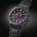 The case and strap are made of high-intensity titanium with a super-hard coating, offering lightness and scratch resistance, while maintaining a glossy black finish. The purple gradient dial with fine glitter, evoking cherry blossom petals shining in the night. It is decorated with a pattern that recalls the trails of stars in the night sky. The crystal is sapphire with Super-Clear treatment for optimal visibility.