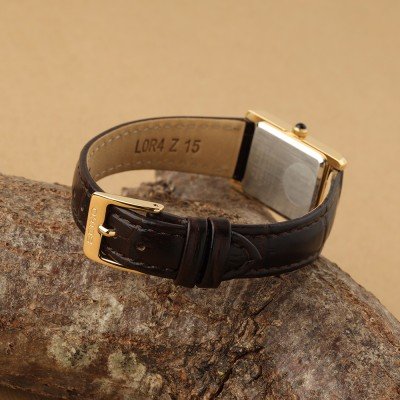 This Seiko watch has a case made of Steel silver with a diameter of 19.6 mm and is fitted with a leather strap. Inside the case lies a Seiko movement and the watch features a Sapphire crystal.