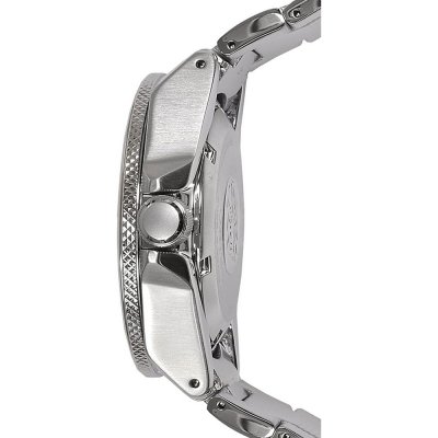 This Seiko watch has a case made of Steel silver with a diameter of 43.8 mm and is fitted with a Steel silver strap. Inside the case lies a Seiko movement and the watch features a Hardlex crystal crystal.
