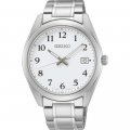 This Seiko watch has a case made of Steel silver with a diameter of 40 mm and is fitted with a Metal strap. Inside the case lies a Seiko movement and the watch features a Sapphire crystal.