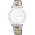 This Seiko watch strap is made of stainless steel and is attached to the watch by means of push pins. The band has a width of 14 mm and is closed by means of a deployment clasp with safety. The strap has no straight mount which means that this strap is only suitable for the watches listed below.
