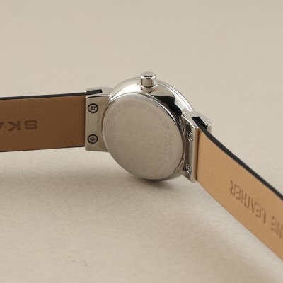 This Skagen watch has a case made of Steel silver with a diameter of 22 mm and is fitted with a leather strap. Inside the case lies a Seiko Instruments Inc. movement and the watch features a Mineral crystal.