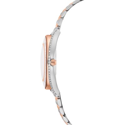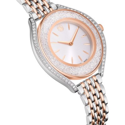 This Swarovski watch has a case made of Steel silver with a diameter of 35.5 mm and is fitted with a Steel silver strap. Inside the case lies a Ronda movement and the watch features a Mineral crystal.