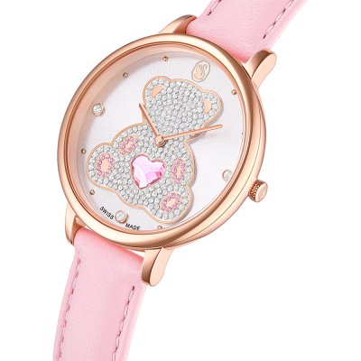 This Swarovski watch has a case made of Steel silver with a diameter of 35 mm and is fitted with a leather strap. Inside the case lies a Ronda movement and the watch features a Mineral crystal.