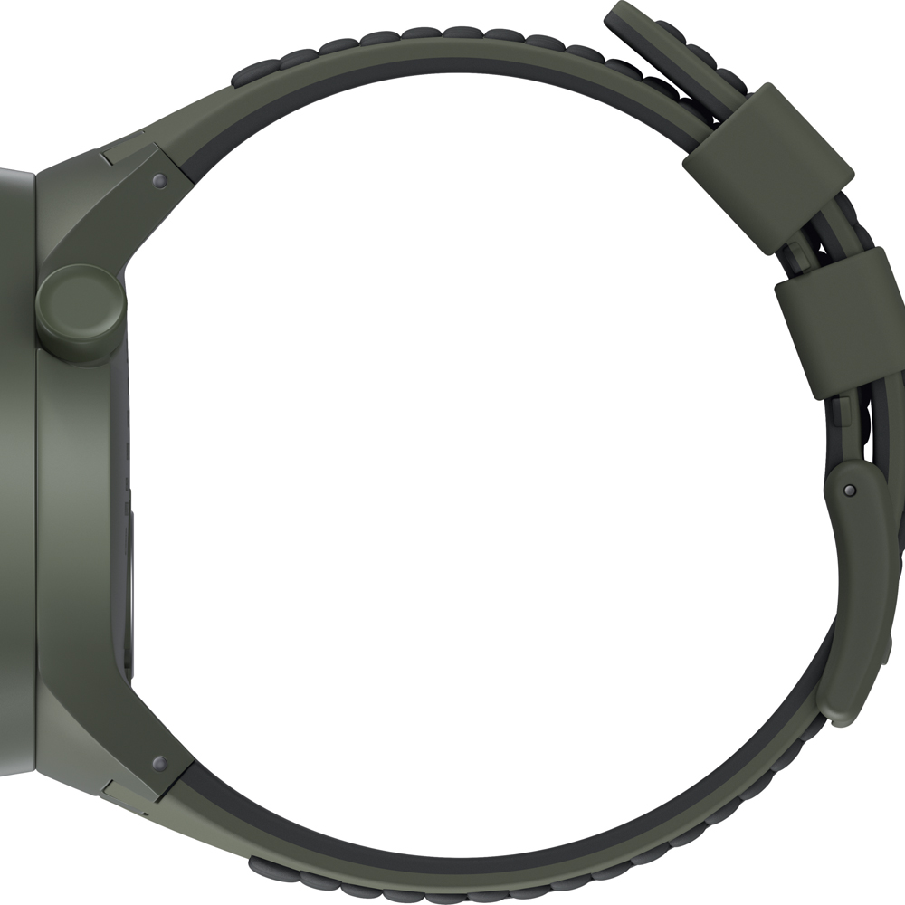 This Swatch watch has a plastic case 41mm in diameter and is fitted with a plastic / resin strap. Inside the case lies a quartz movement and the watch features a plexiglass crystal.