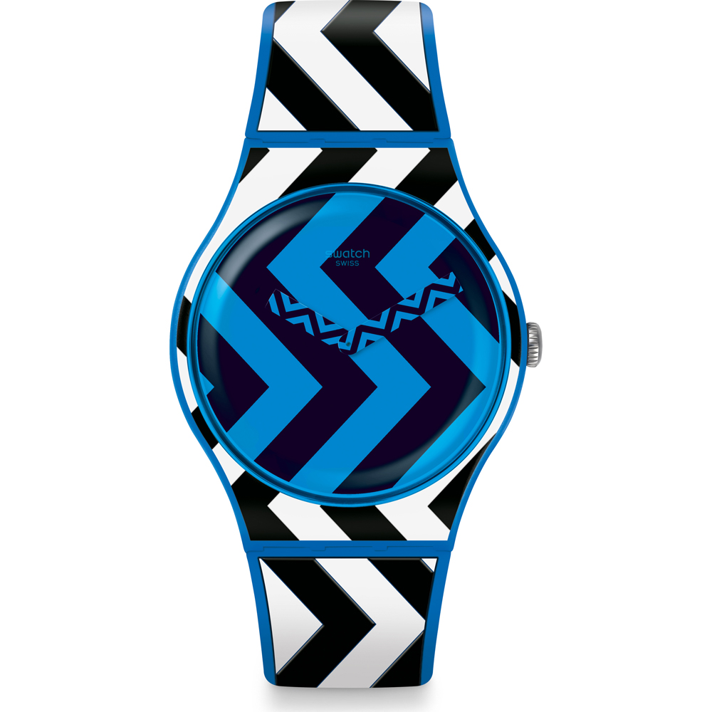 This Swatch watch has a plastic case 41mm in diameter and is fitted with a plastic / resin strap. Inside the case lies a quartz movement and the watch features a plexiglass crystal.