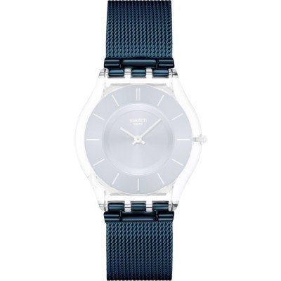 This Swatch watch strap is made of stainless steel and is attached to the watch by means of steel pins. The band has a width of 16.5 mm and is closed by means of a buckle. The strap has no straight mount which means that this strap is only suitable for the watches listed below.