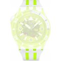 This Swatch watch has a case made of Bio-sourced resin with a diameter of 44 mm and is fitted with a rubber strap. Inside the case lies a ETA movement and the watch features a Acrylic crystal.
