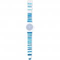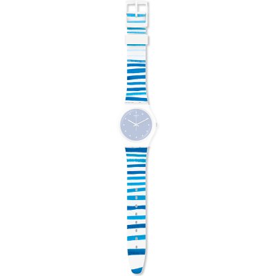 This Swatch watch strap is made of silicone and is attached to the watch by means of steel pins. The band has a width of 17 mm and is closed by means of a buckle. The strap has no straight mount which means that this strap is only suitable for the watches listed below.
