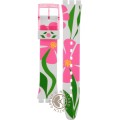 This Swatch watch strap is made of silicone and is attached to the watch by means of steel pins. The band has a width of 17 mm and is closed by means of a buckle. The strap has no straight mount which means that this strap is only suitable for the watches listed below.