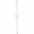This Swatch watch strap is made of silicone and is attached to the watch by means of steel pins. The band has a width of 12 mm and is closed by means of a buckle. The strap has no straight mount which means that this strap is only suitable for the watches listed below.