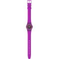 This Swatch watch has a case made of Resin with a diameter of 25 mm and is fitted with a rubber strap. Inside the case lies a ETA movement and the watch features a Acrylic crystal.