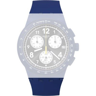 This Swatch watch strap is made of silicone and is attached to the watch by means of steel pins. The band has a width of 20.1 mm and is closed by means of a buckle. The strap has no straight mount which means that this strap is only suitable for the watches listed below.