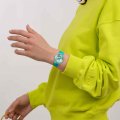 This Swatch watch has a case made of Bio-sourced resin with a diameter of 33.7 mm and is fitted with a rubber strap. Inside the case lies a ETA movement and the watch features a Acrylic crystal.