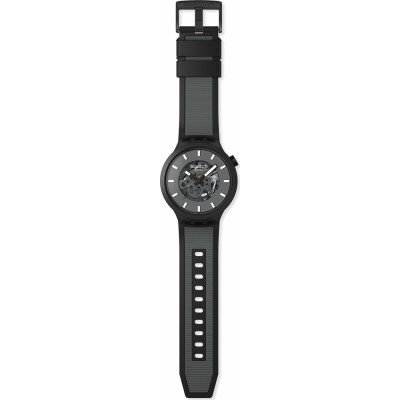 This Swatch watch has a case made of Bio-sourced resin with a diameter of 47 mm and is fitted with a rubber strap. Inside the case lies a ETA movement and the watch features a Acrylic crystal.
