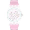 This Swatch watch strap is made of silicone/Rubber and is attached to the watch by means of steel pins. The band has a width of 19.7 mm and is closed by means of a buckle. The strap has no straight mount which means that this strap is only suitable for the watches listed below.