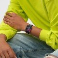 This Swatch watch has a case made of BioCeramic with a diameter of 33 mm and is fitted with a Bio-sourced resin strap. Inside the case lies a ETA movement and the watch features a Acrylic crystal.