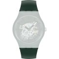 This Swatch watch strap is made of bio-sourced resin and is attached to the watch by means of steel pins. The band has a width of 19.7 mm and is closed by means of a buckle. The strap has no straight mount which means that this strap is only suitable for the watches listed below.