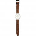 This Swatch watch strap is made of leather and is attached to the watch by means of steel pins. The band has a width of 17 mm and is closed by means of a buckle. The strap has no straight mount which means that this strap is only suitable for the watches listed below.