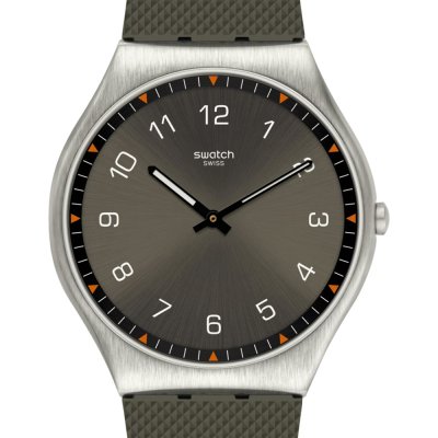 This Swatch watch has a case made of Steel silver with a diameter of 42 mm and is fitted with a rubber strap. Inside the case lies a ETA movement and the watch features a Acrylic crystal.
