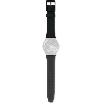 This Swatch watch strap is made of silicone and is attached to the watch by means of steel pins. The band has a width of 19.7 mm and is closed by means of a buckle. The strap has no straight mount which means that this strap is only suitable for the watches listed below.