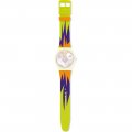 This Swatch watch strap is made of silicone and is attached to the watch by means of steel pins. The band has a width of 19.7 mm and is closed by means of a buckle. The strap has no straight mount which means that this strap is only suitable for the watches listed below.