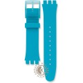 This Swatch watch strap is made of silicone and is attached to the watch by means of steel pins. The band has a width of 19.7 mm and is closed by means of a buckle. The strap has no straight mount which means that this strap is only suitable for the watches listed below.