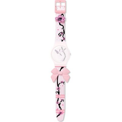 This Swatch watch strap is made of silicone and is attached to the watch by means of steel pins. The band has a width of 19.7 mm and is closed by means of a buckle. The strap has no straight mount which means that this strap is only suitable for the watches listed below.