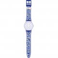 This Swatch watch strap is made of silicone and is attached to the watch by means of steel pins. The band has a width of 19.7 mm and is closed by means of a buckle. The strap has no straight mount which means that this strap is only suitable for the watches listed below.
