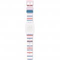 This Swatch watch strap is made of silicone and is attached to the watch by means of steel pins. The band has a width of 28 mm and is closed by means of a buckle. The strap has no straight mount which means that this strap is only suitable for the watches listed below.