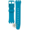 This Swatch watch strap is made of silicone and is attached to the watch by means of steel pins. The band has a width of 20.1 mm and is closed by means of a buckle. The strap has no straight mount which means that this strap is only suitable for the watches listed below.