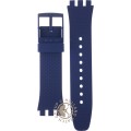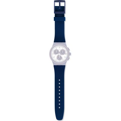 This Swatch watch strap is made of silicone and is attached to the watch by means of steel pins. The band has a width of 20.1 mm and is closed by means of a buckle. The strap has no straight mount which means that this strap is only suitable for the watches listed below.