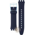 This Swatch watch strap is made of silicone and is attached to the watch by means of steel pins. The band has a width of 19.8 mm and is closed by means of a buckle. The strap has no straight mount which means that this strap is only suitable for the watches listed below.