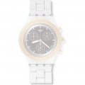 This Swatch watch strap is made of aluminum and is attached to the watch by means of steel pins. The band has a width of 19.9 mm and is closed by means of a deployment clasp with safety. The strap has no straight mount which means that this strap is only suitable for the watches listed below.