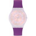 This Swatch watch has a case made of Bio-sourced resin with a diameter of 33.7 mm and is fitted with a rubber strap. Inside the case lies a ETA movement and the watch features a Acrylic crystal.