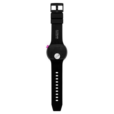 This Swatch watch has a case made of Resin with a diameter of 47 mm and is fitted with a rubber strap. Inside the case lies a ETA movement and the watch features a Acrylic crystal.