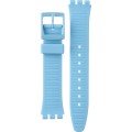 This Swatch watch strap is made of silicone and is attached to the watch by means of steel pins. The band has a width of 17 mm and is closed by means of a buckle. The strap has no straight mount which means that this strap is only suitable for the watches listed below.