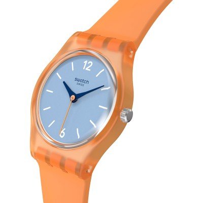 This Swatch watch has a case made of Plastic / Resin with a diameter of 25 mm and is fitted with a rubber strap. Inside the case lies a ETA movement and the watch features a Acrylic crystal.