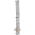 This Swatch watch strap is made of stainless steel and is attached to the watch by means of steel pins. The band has a width of 19.6 mm and is closed by means of a invisible butterfly clasp. The strap has no straight mount which means that this strap is only suitable for the watches listed below.