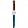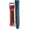 This Swatch watch strap is made of textile leather and is attached to the watch by means of steel pins. The band has a width of 17 mm and is closed by means of a buckle. The strap has no straight mount which means that this strap is only suitable for the watches listed below.