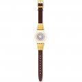 This Swatch watch strap is made of leather and is attached to the watch by means of steel pins. The band has a width of 17 mm and is closed by means of a buckle. The strap has no straight mount which means that this strap is only suitable for the watches listed below.