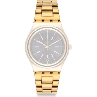 This Swatch watch strap is made of stainless steel and is attached to the watch by means of steel pins. The band has a width of 17 mm and is closed by means of a deployment clasp with push buttons and safety. The strap has no straight mount which means that this strap is only suitable for the watches listed below.