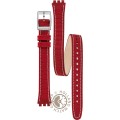 This Swatch watch strap is made of textile leather and is attached to the watch by means of steel pins. The band has a width of 12 mm and is closed by means of a buckle. The strap has no straight mount which means that this strap is only suitable for the watches listed below.