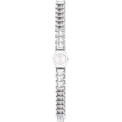 This Swatch watch strap is made of stainless steel and is attached to the watch by means of steel pins. The band has a width of 12 mm and is closed by means of a jewelry clasp. The strap has no straight mount which means that this strap is only suitable for the watches listed below.