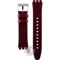 This Swatch watch strap is made of leather and is attached to the watch by means of steel pins. The band has a width of 18.9 mm and is closed by means of a buckle. The strap has no straight mount which means that this strap is only suitable for the watches listed below.