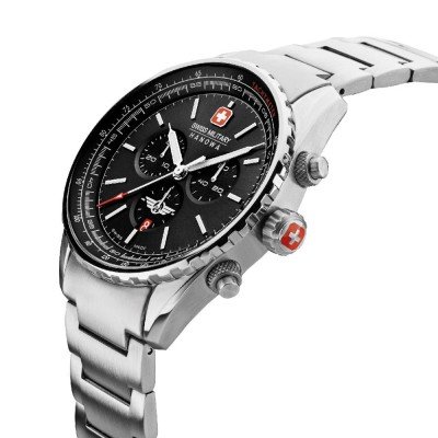 This Swiss Military Hanowa watch has a case made of Steel silver with a diameter of 44 mm and is fitted with a Steel silver strap. Inside the case lies a Ronda movement and the watch features a Sapphire crystal.