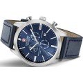 This Swiss Military Hanowa watch has a case made of Steel silver with a diameter of 44 mm and is fitted with a leather strap. Inside the case lies a ISA movement and the watch features a Sapphire crystal.