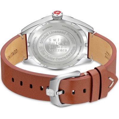 This Swiss Military Hanowa watch has a case made of Steel silver with a diameter of 42 mm and is fitted with a leather strap. Inside the case lies a Ronda movement and the watch features a Sapphire crystal.