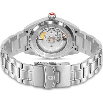 This Swiss Military Hanowa watch has a case made of Steel silver with a diameter of 41 mm and is fitted with a Steel silver strap. Inside the case lies a Soprod movement and the watch features a Sapphire crystal.