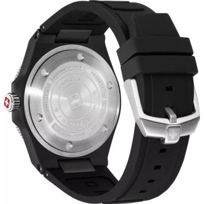 This Swiss Military Hanowa watch has a case made of Tide Ocean plastic with a diameter of 45 mm and is fitted with a rubber strap. Inside the case lies a Ronda movement and the watch features a Sapphire crystal.